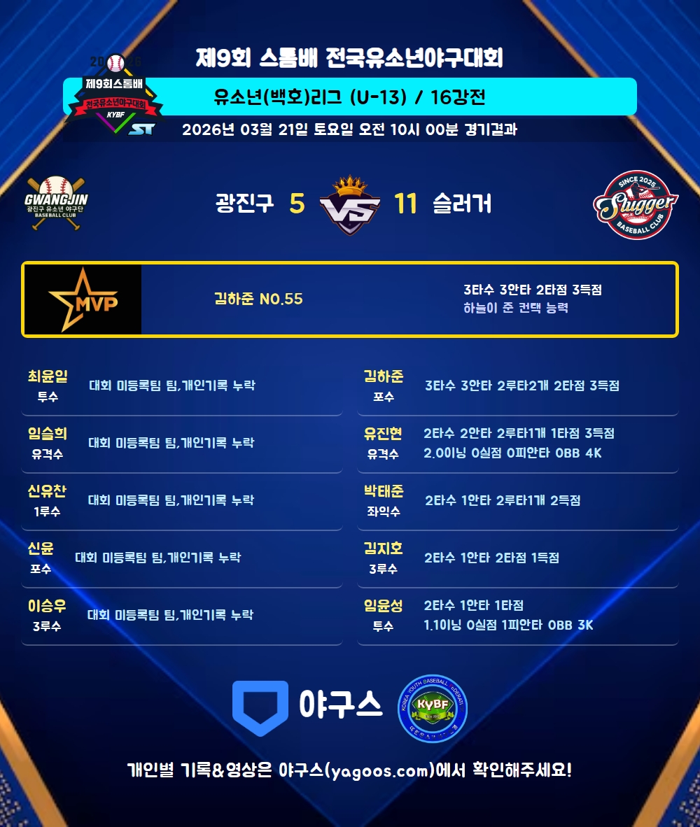 | 4 | 포 | 신윤(11) | 대회 미등록팀 팀 / 개인기록 누락 | |||||||||||||||||||