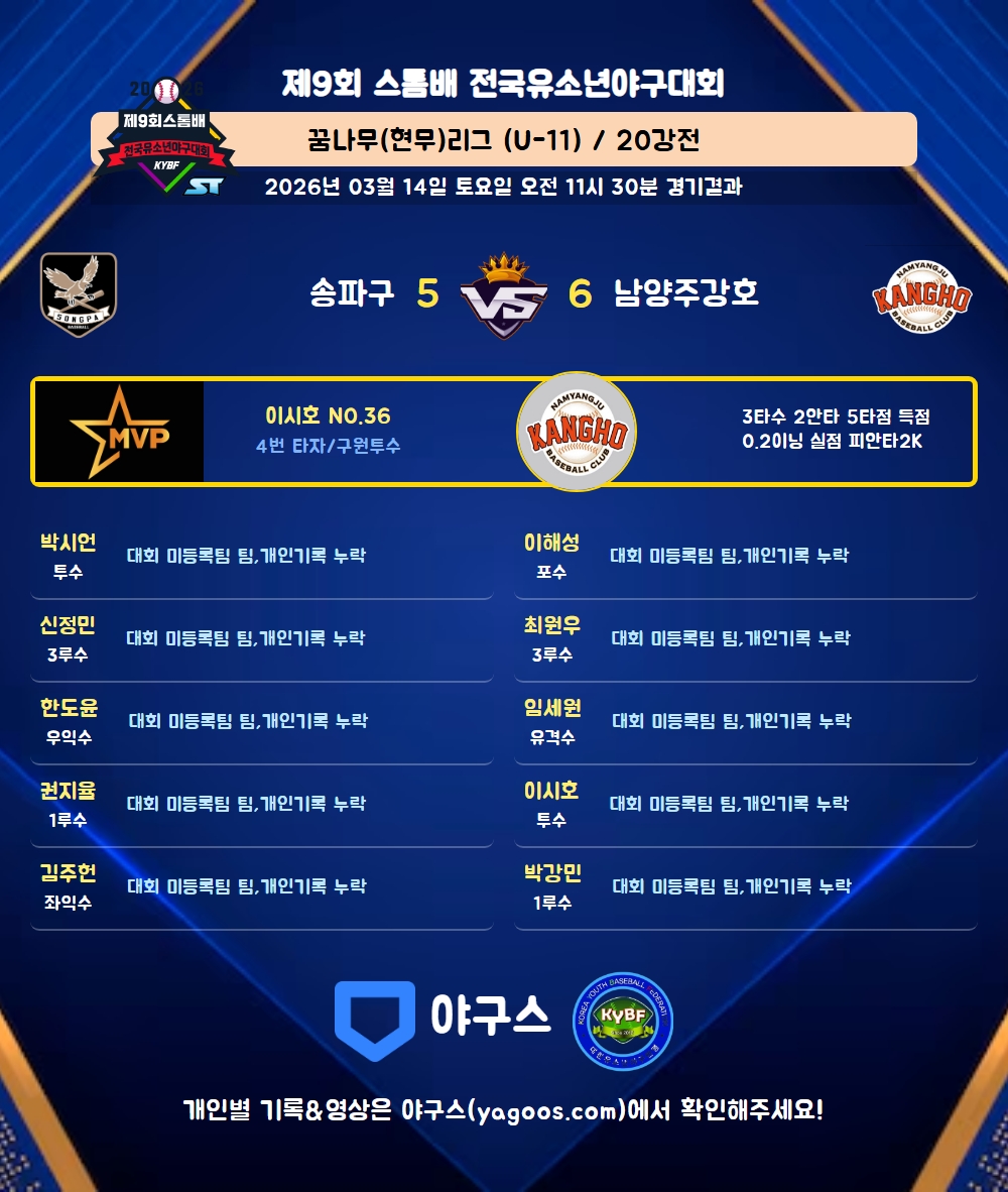 | 2 | 박시언(6) | 대회 미등록팀 팀 / 개인기록 누락 | |||||||||||||||||||
