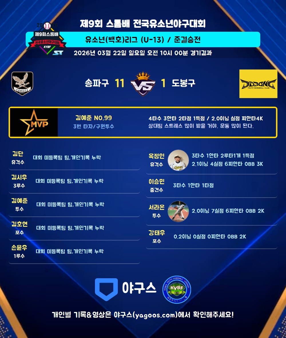 | 3 | 투 | 김예준(99) | 대회 미등록팀 팀 / 개인기록 누락 | |||||||||||||||||||