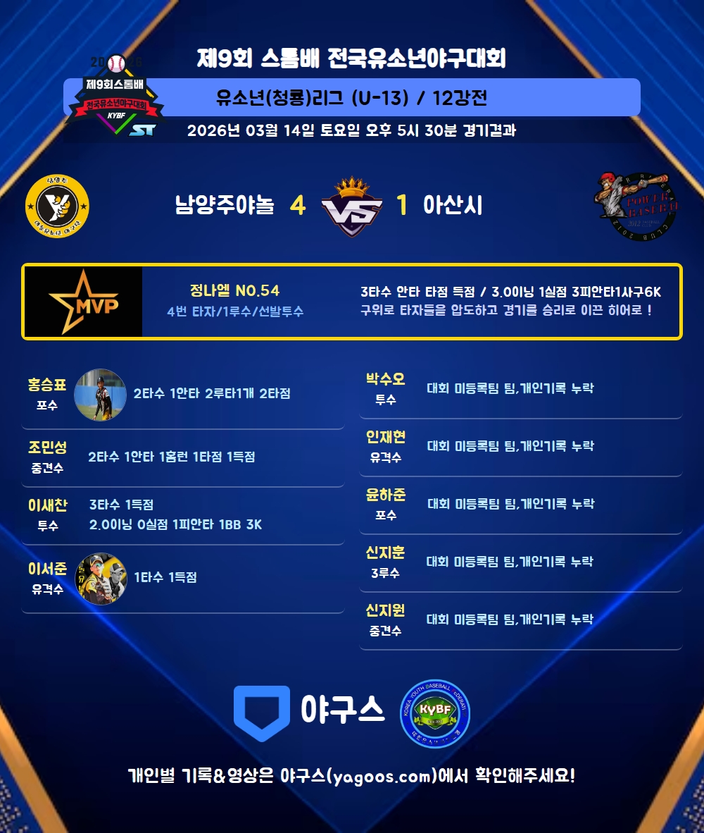| 남양주야놀 | 1 | 1 | 1 | 0 | 1 | 0 | 4 | 2 | 0 | 4 | 3 |