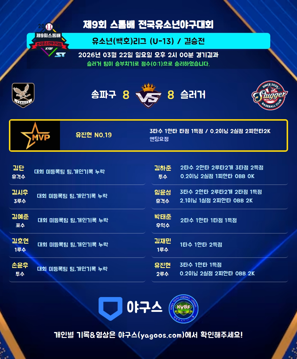 | 3 | 포 | 김예준(99) | 대회 미등록팀 팀 / 개인기록 누락 | |||||||||||||||||||