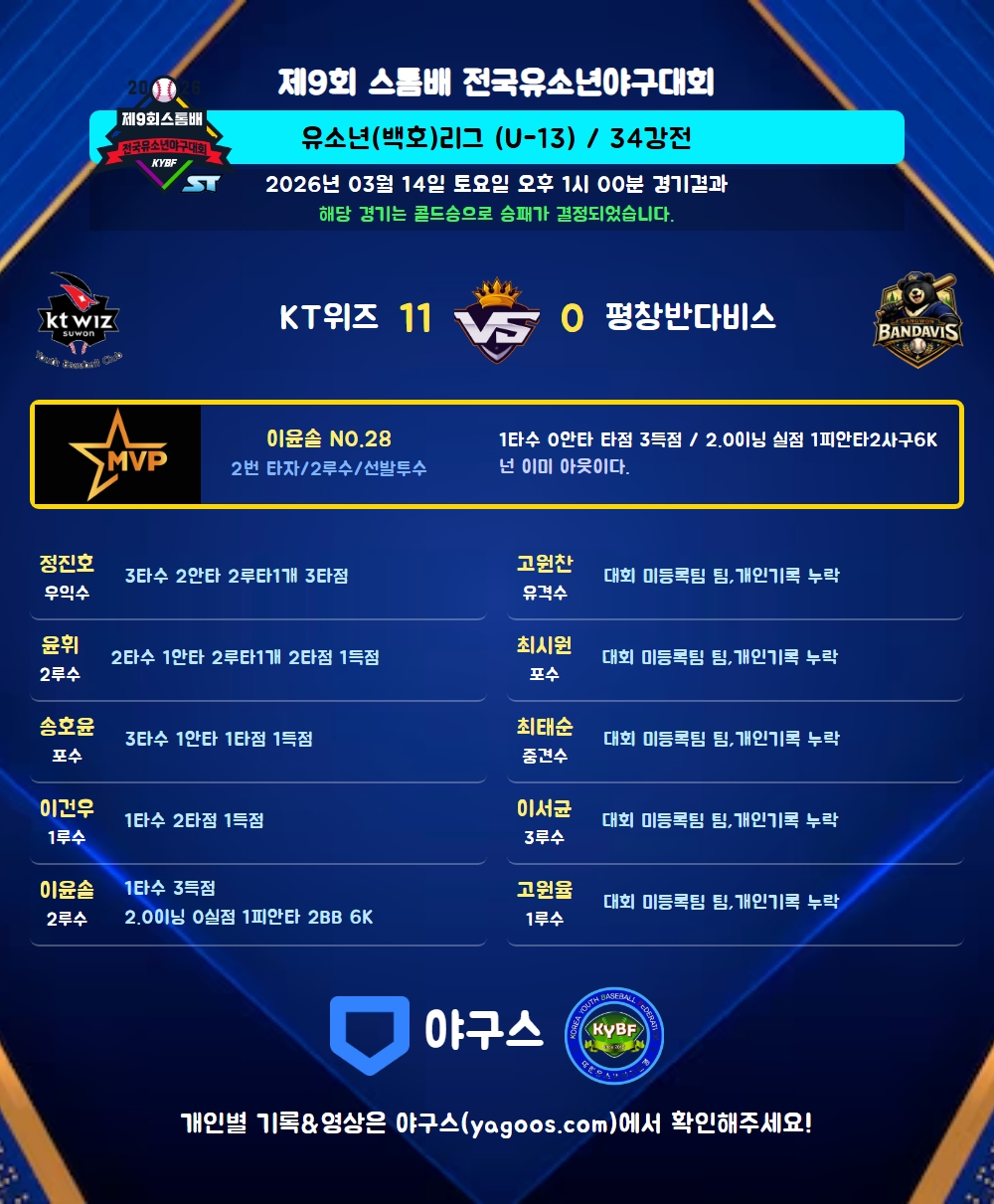 해당 경기는 콜드승으로 승패가 결정되었습니다.