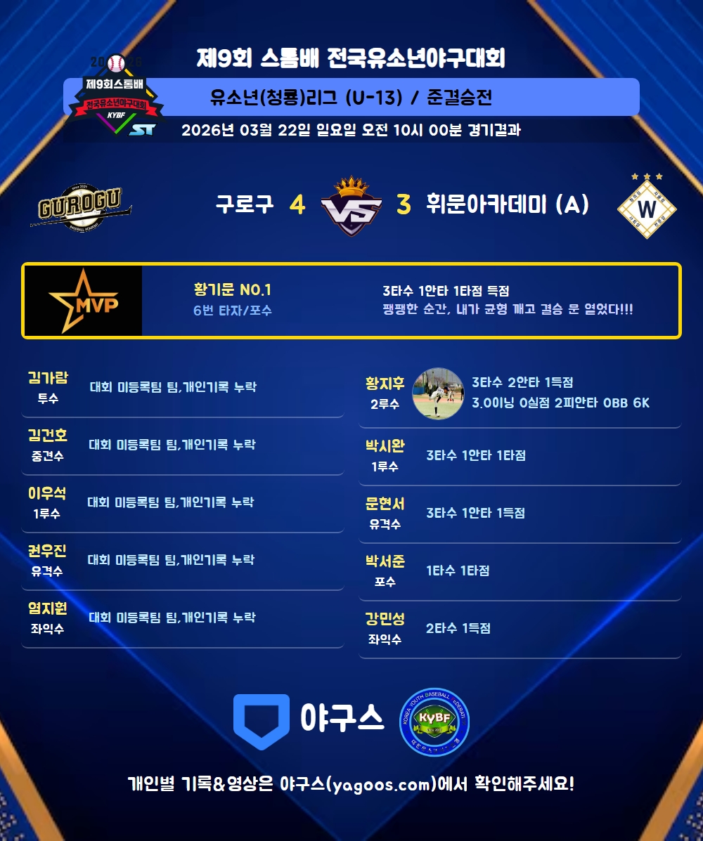 | 6 | 포 | 황기문(1) | 대회 미등록팀 팀 / 개인기록 누락 | |||||||||||||||||||