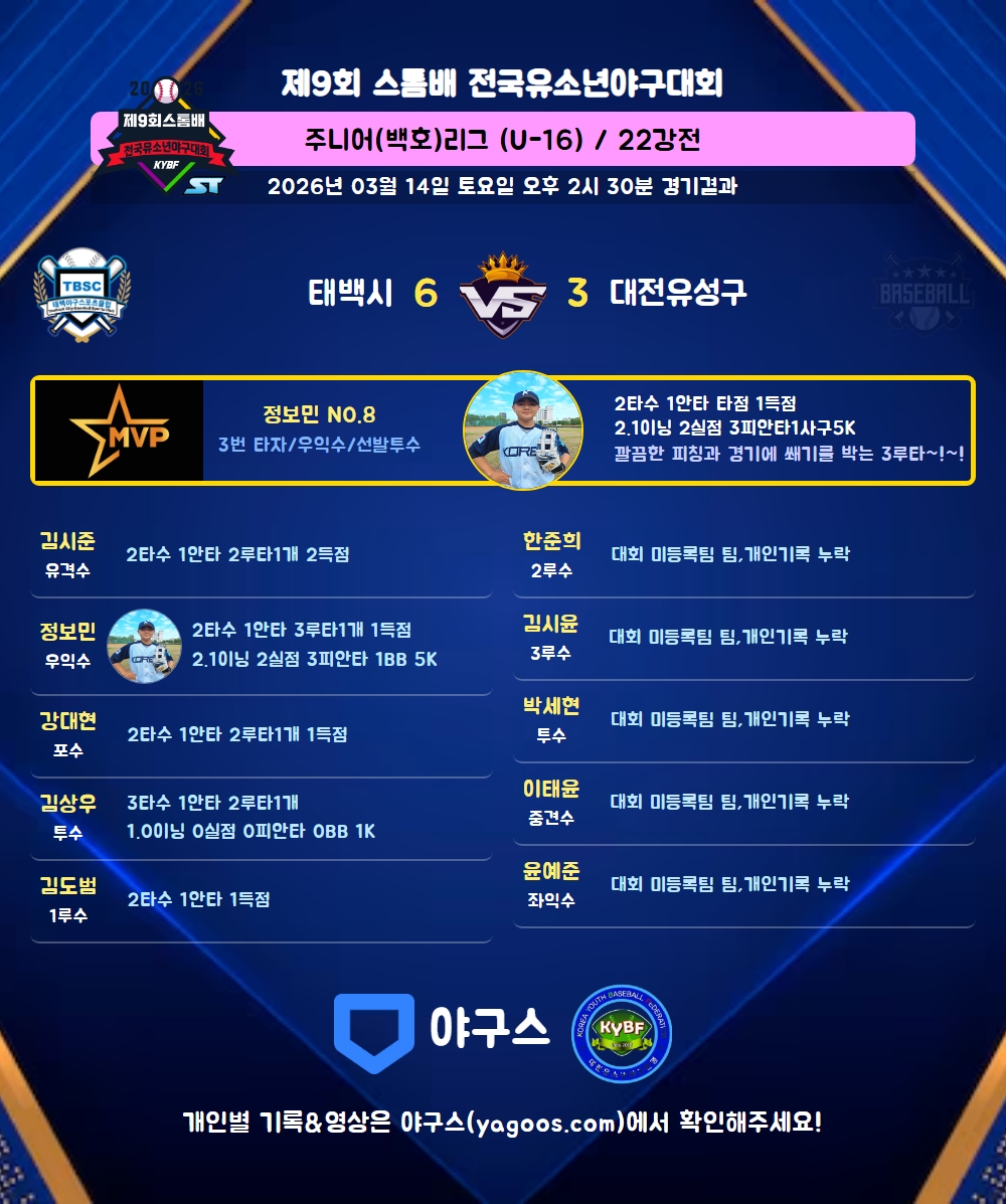 | 4 | 중 | 이태윤(10) | 대회 미등록팀 팀 / 개인기록 누락 | |||||||||||||||||||