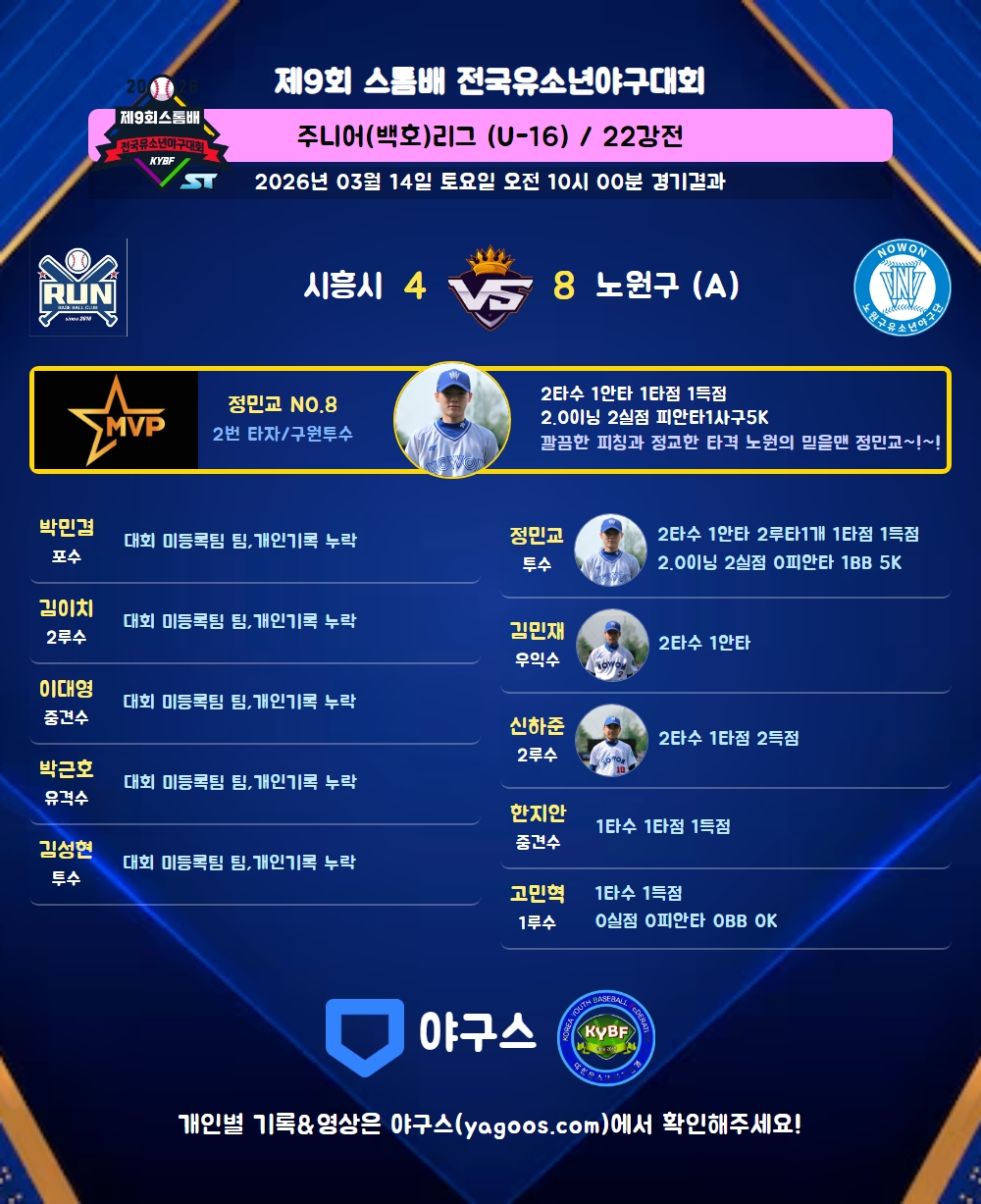| 3 | 포 | 박민겸(21) | 대회 미등록팀 팀 / 개인기록 누락 | |||||||||||||||||||