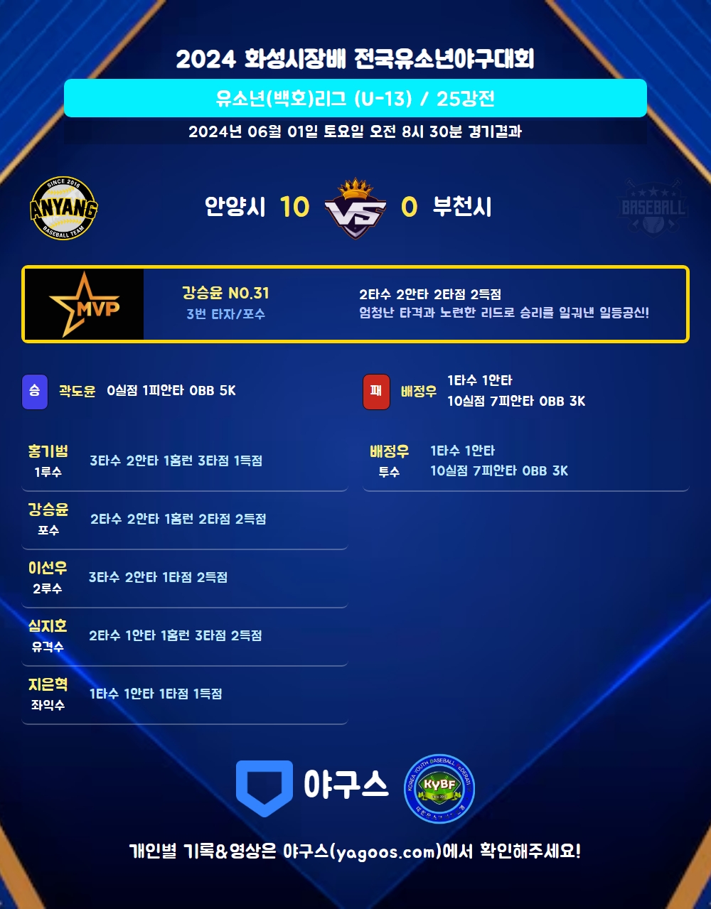 | 1 | 곽도윤(32) | 승 | - | 7 | 1 | 1 | 0 | - | 5 | 21 | 0 | 0 | 0.00 |