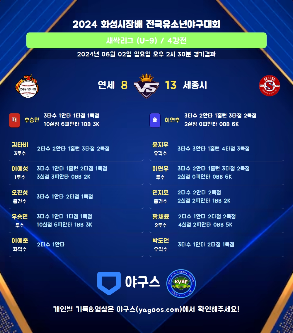 | 홈런 | 김타비(10) 이예성(17) 윤지후(3) 이연우(89) |