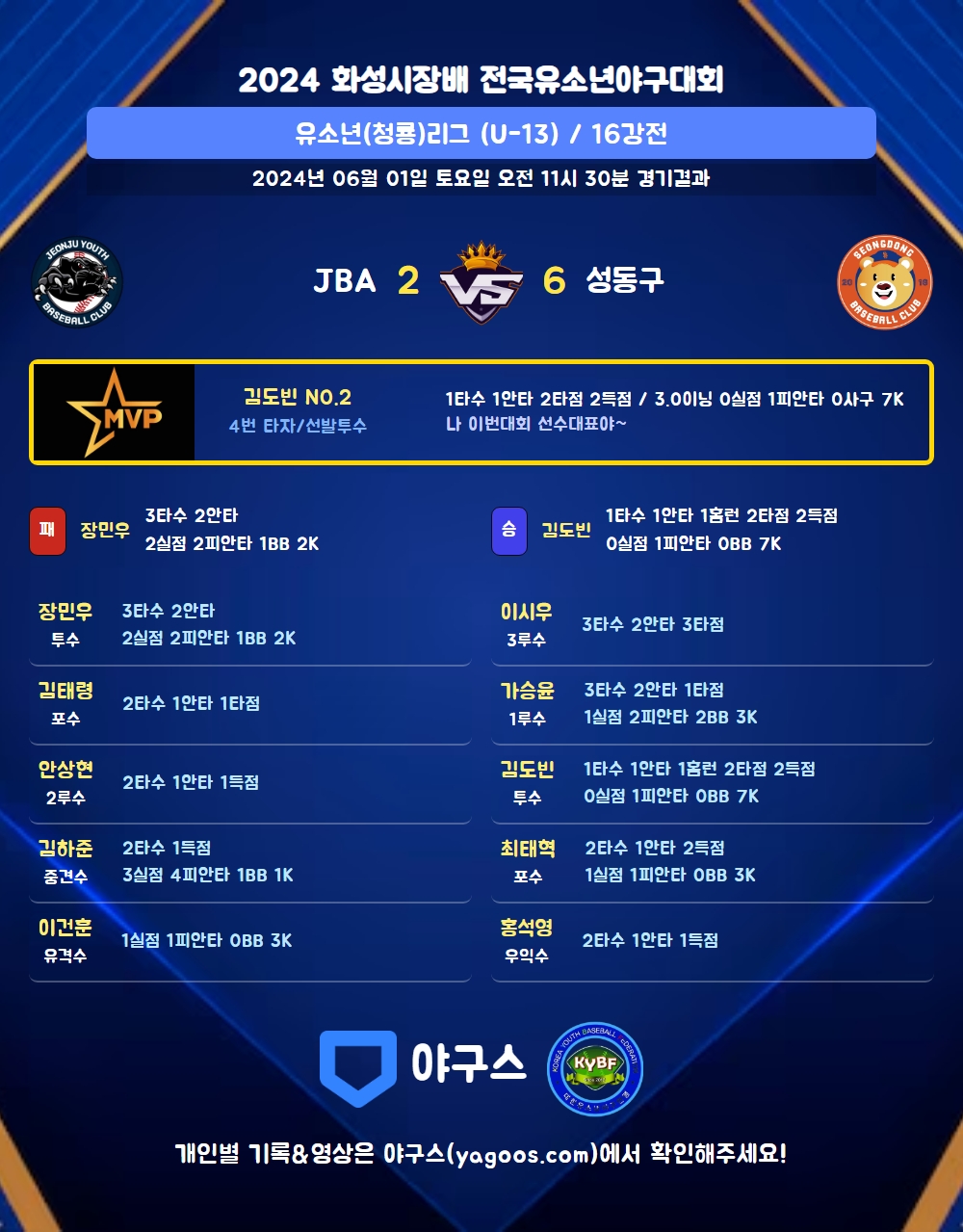 | 1 | 투 | 장민우(14) | 중전안 | - | 2땅 | - | 2내안 | 3 | 2 | 0 | 0 | 0 | 2 | - | 0 | 0.667 |