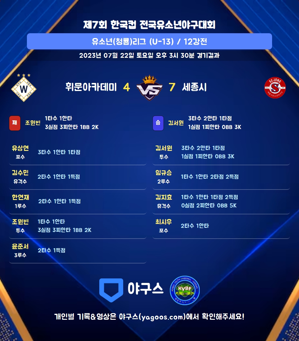 | 8 | 포 | 최시우(17) | - | 3번안 | - | 3플 | - | 2 | 1 | 0 | 0 | 0 | 0 | - | 0 | 0.500 |