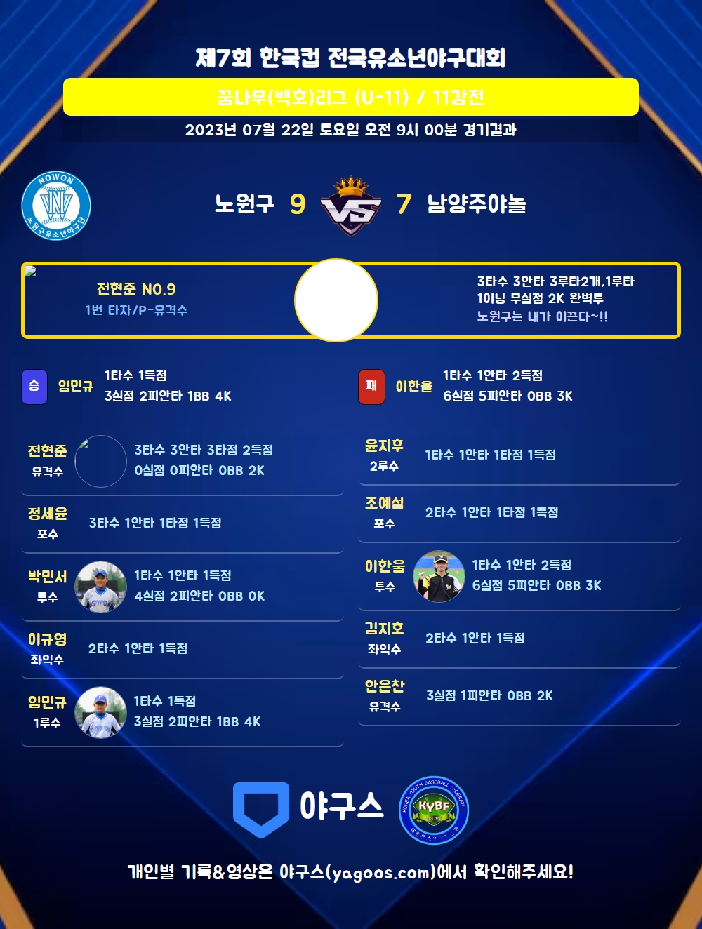 | 3 | 전현준(9) | - | - | 2 | 0 | 0 | 0 | - | 2 | 10 | 0 | 0 | 0 |