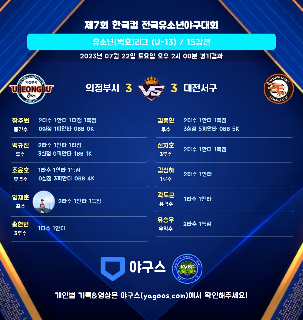 | 대전서구 | 3 | 0 | 0 | 0 | 3 | 4 | 1 | 8 |