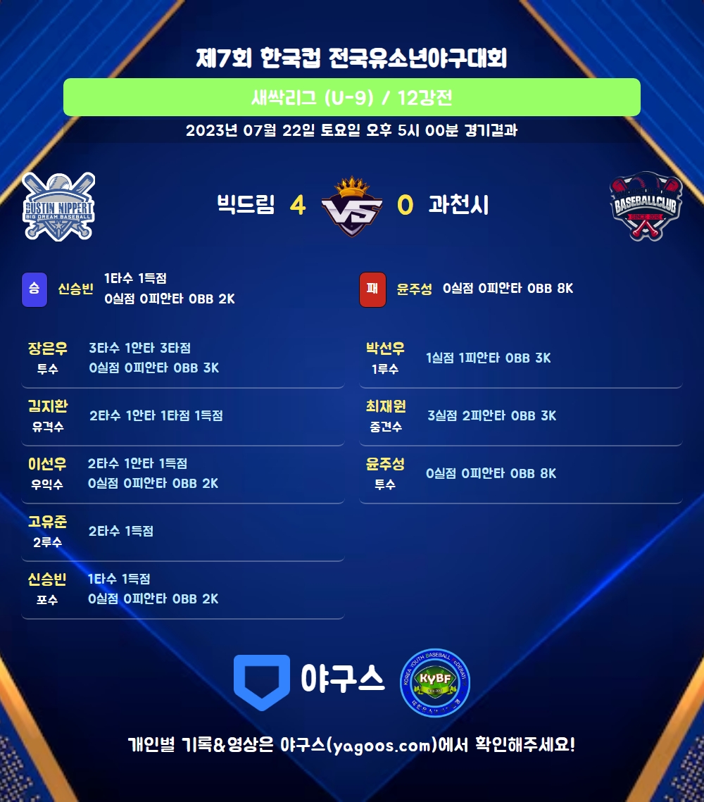| 2 | 신승빈(93) | 승 | - | 10 | 0 | 0 | 0 | 1 | 2 | 29 | 0 | 0 | 0 |