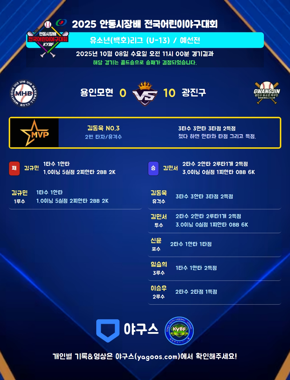 해당 경기는 콜드승으로 승패가 결정되었습니다.
