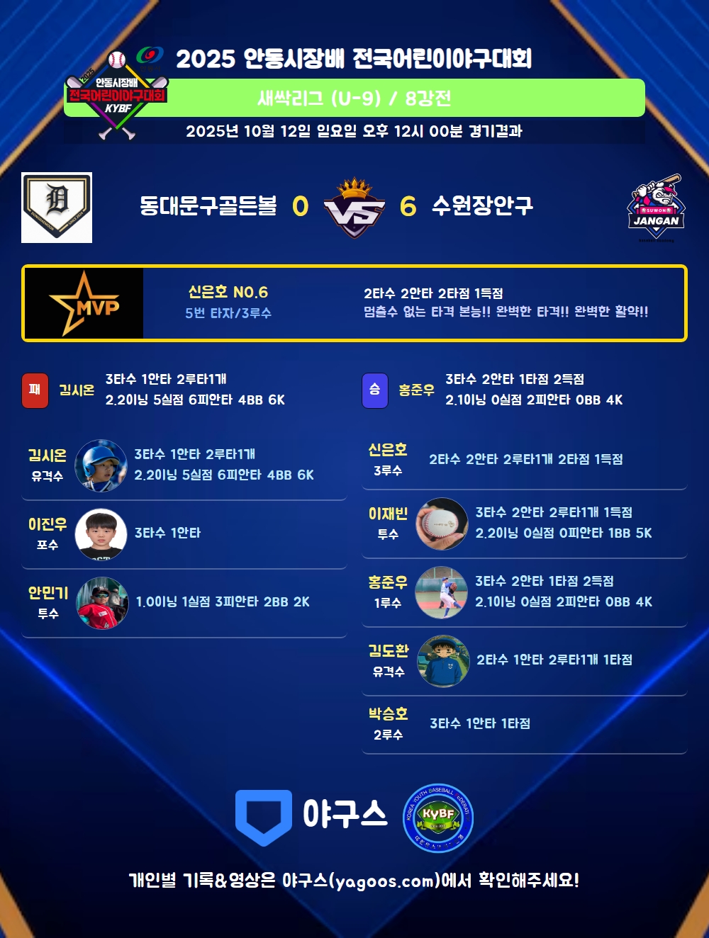 | 2루타 | 김시온(6) 이재빈(58) 김도환(51) 신은호(6) |