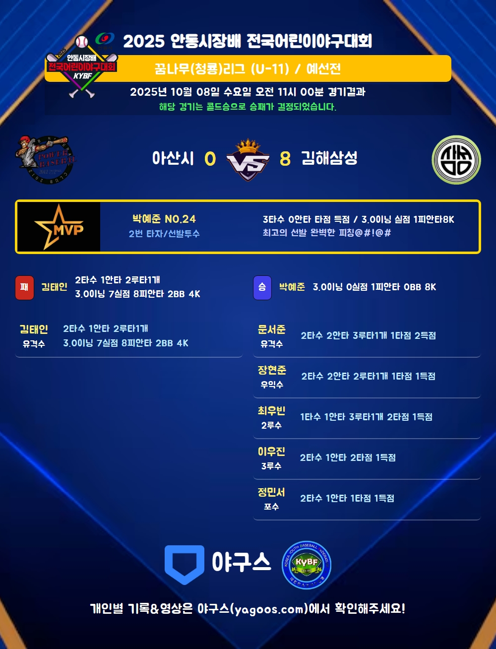 해당 경기는 콜드승으로 승패가 결정되었습니다.