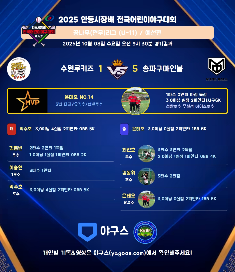 | 3 | 유 | 은태오(14) | 삼진 | - | - | 4구 | - | 1 | 0 | - | - | - | - | 1 | 1 | 0.000 |