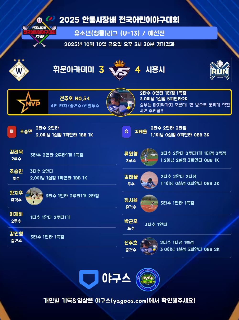 | 6 | 三 | 박시완(3) | - | 낫아웃삼진 | - | 유내안 | - | 3땅 | 3 | 1 | - | 1 | - | - | - | 1 | 0.333 |