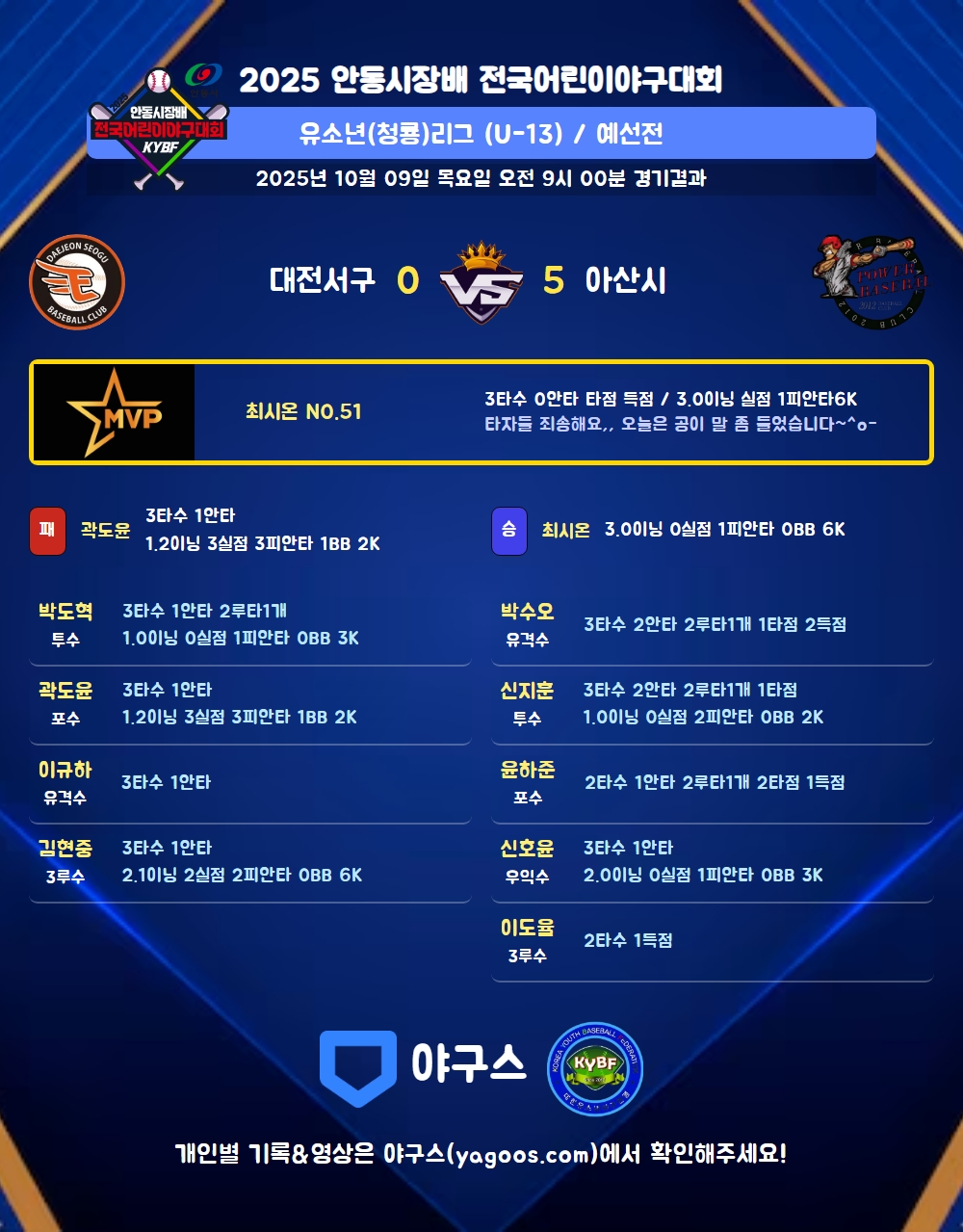 | 1 | 포 | 곽도윤(39) | 3땅 | - | 3플 | - | - | 우안 | 3 | 1 | - | - | - | - | - | - | 0.333 |