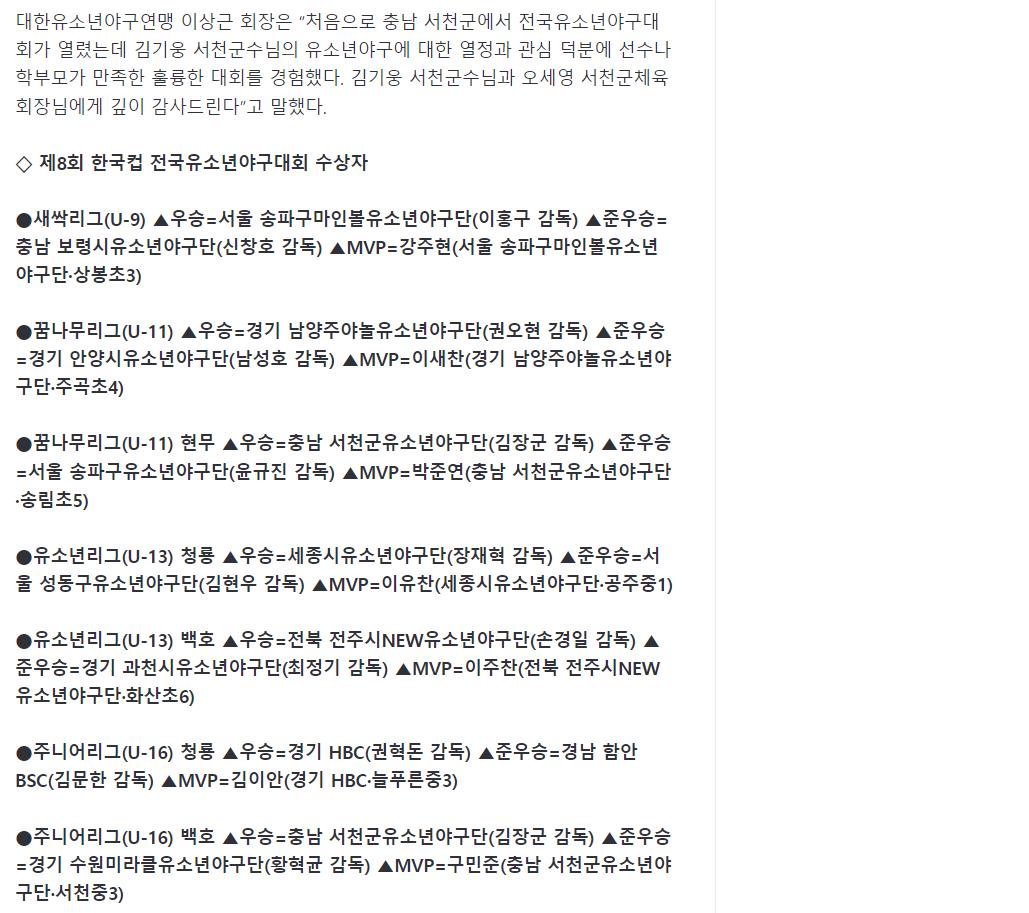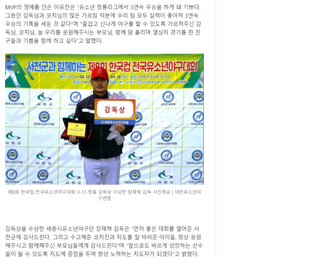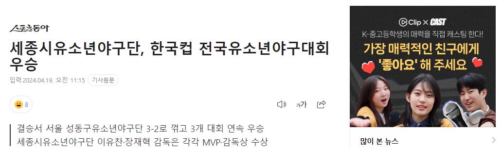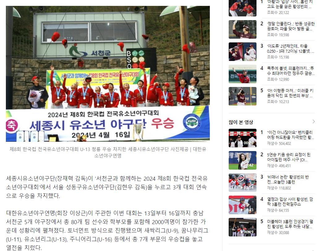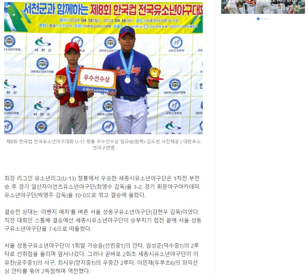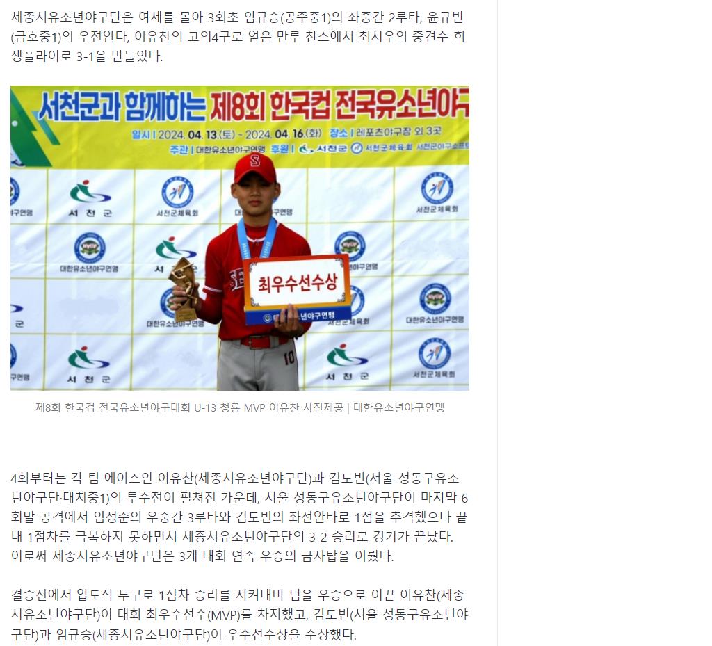 세종시유소년야구단, 한국컵 전국유소년야구대회 우승