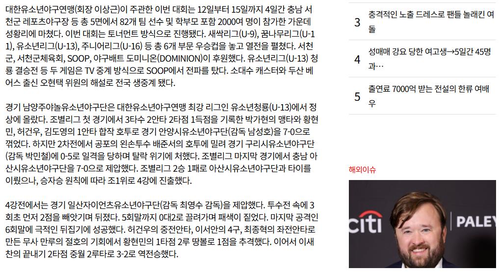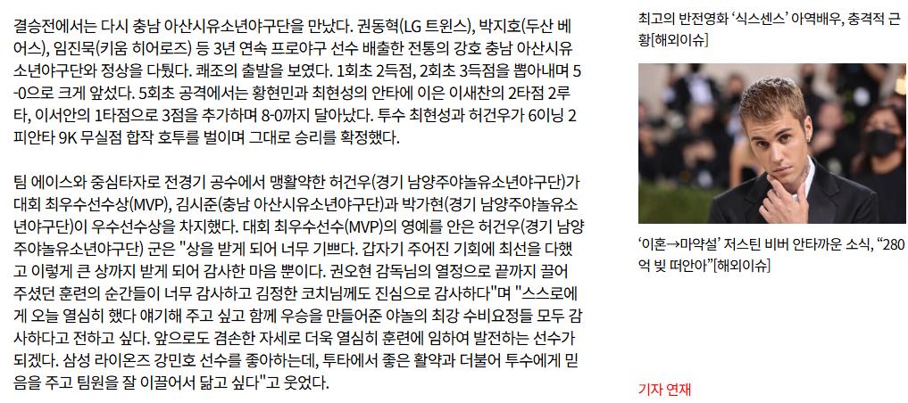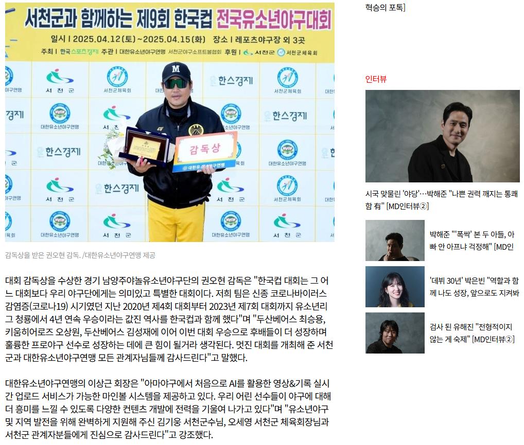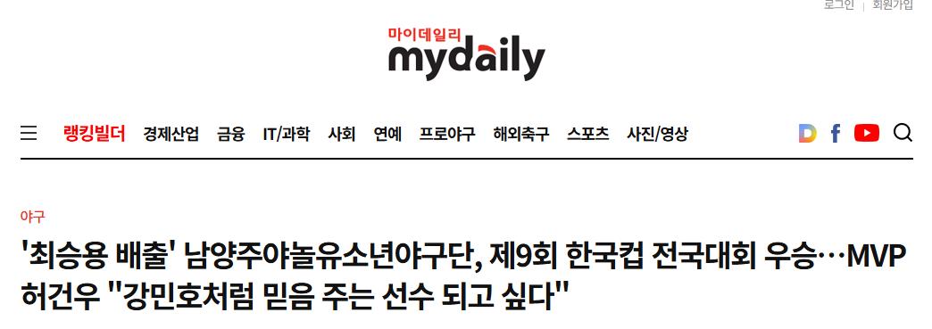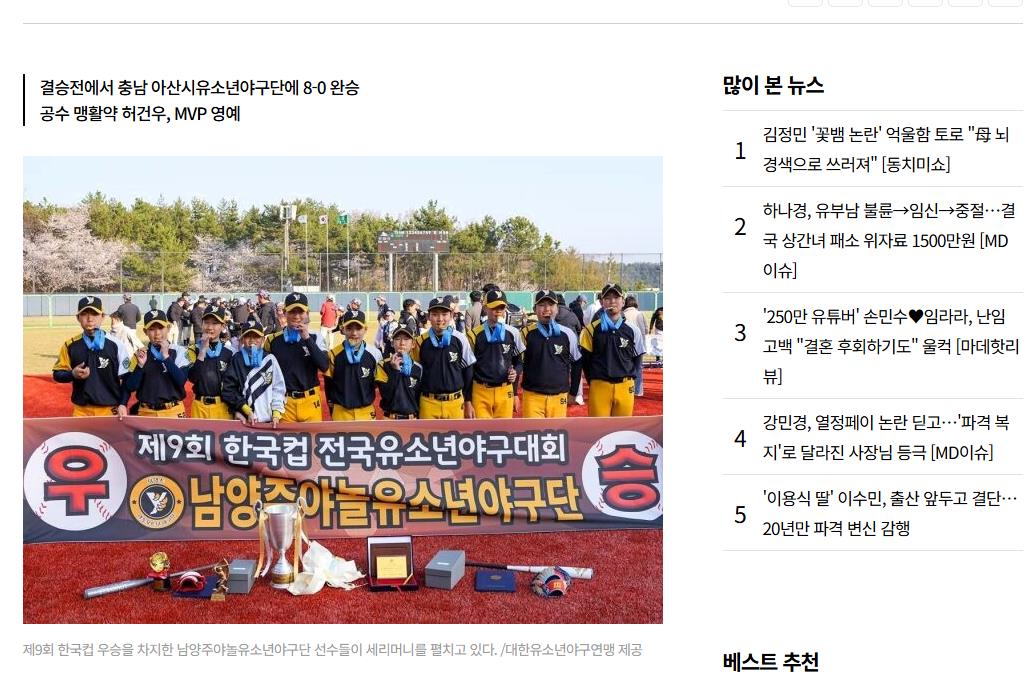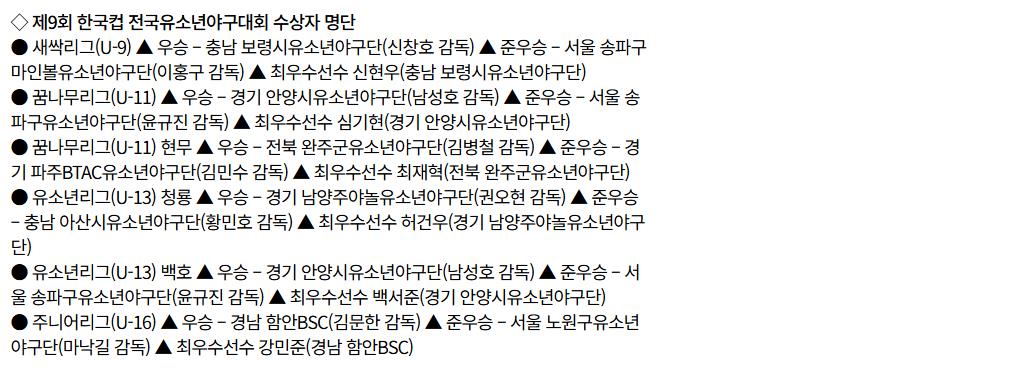 최승용 배출한 남양주야놀유소년야구단, 제9회 한국컵 전국대회 우승