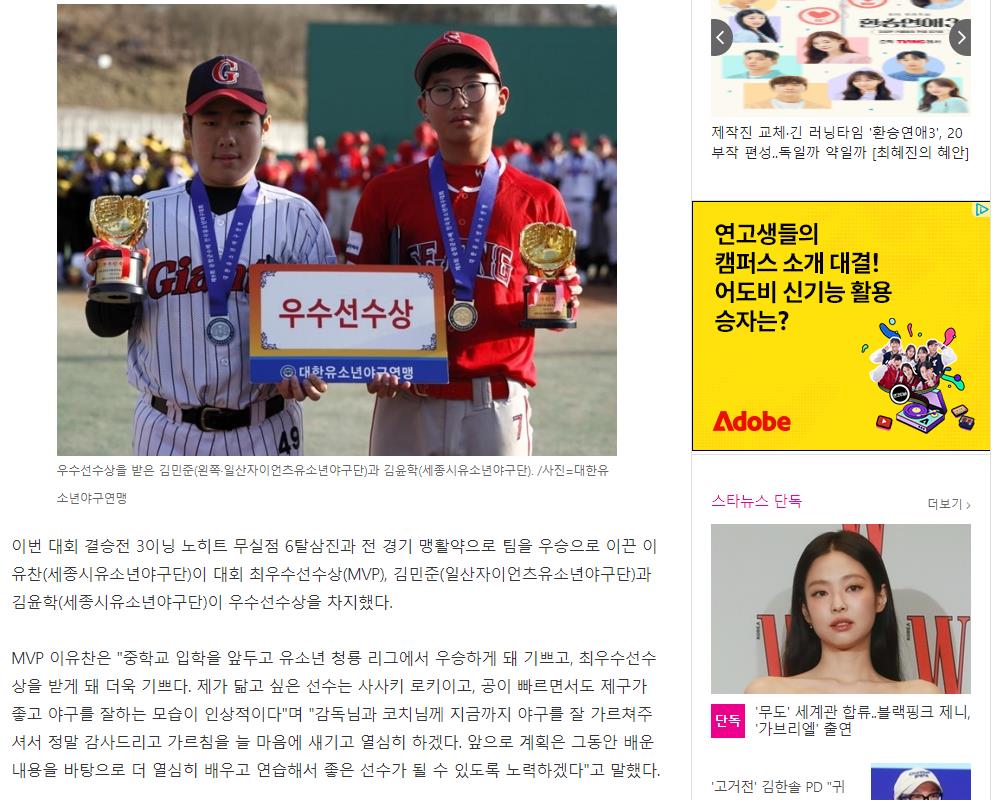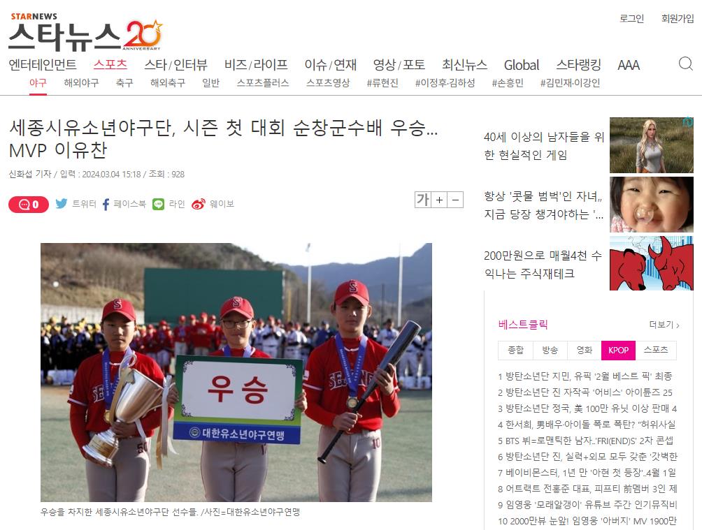 세종시유소년야구단, 시즌 첫 대회 순창군수배 우승... MVP 이유찬
