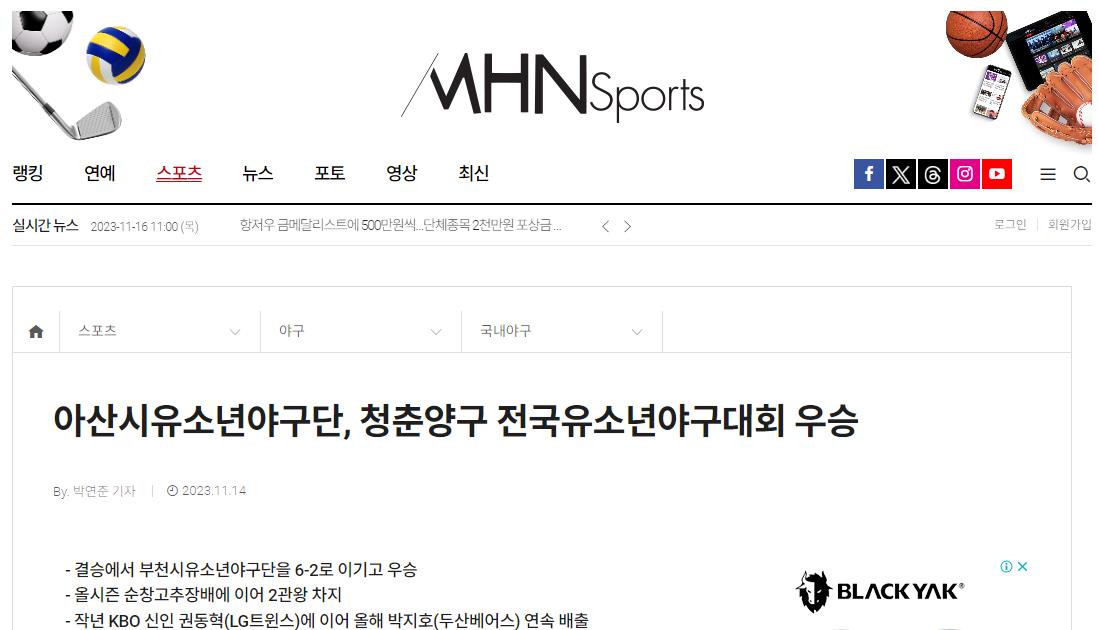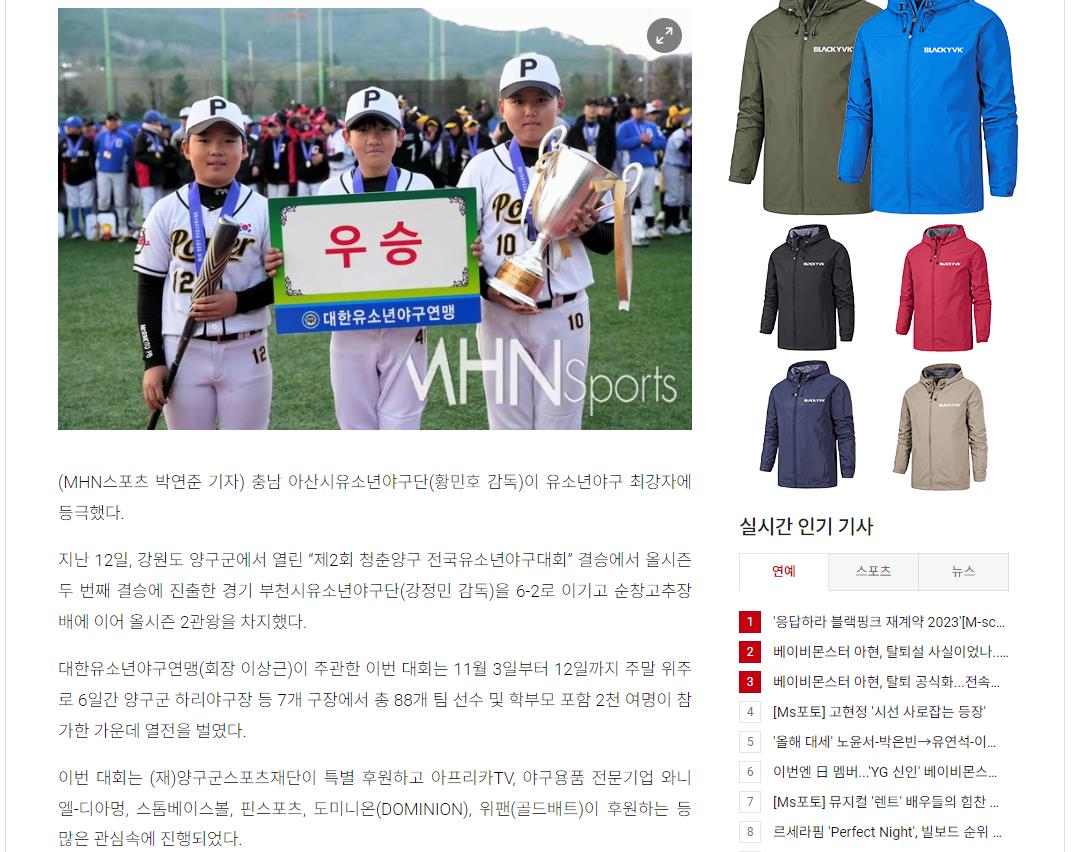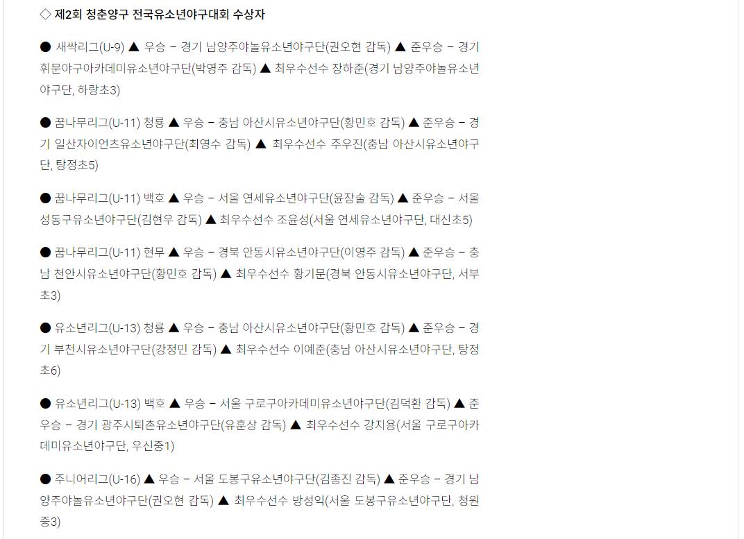 아산시유소년야구단, 제2회 청춘양구 전국유소년야구대회 우승