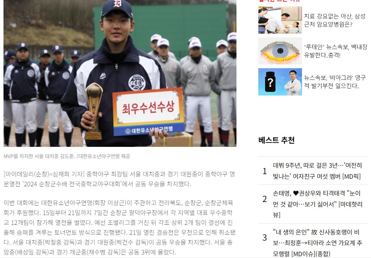 대치중·대원중, 2024 순창군수배 전국중학교야구대회 공동 우승