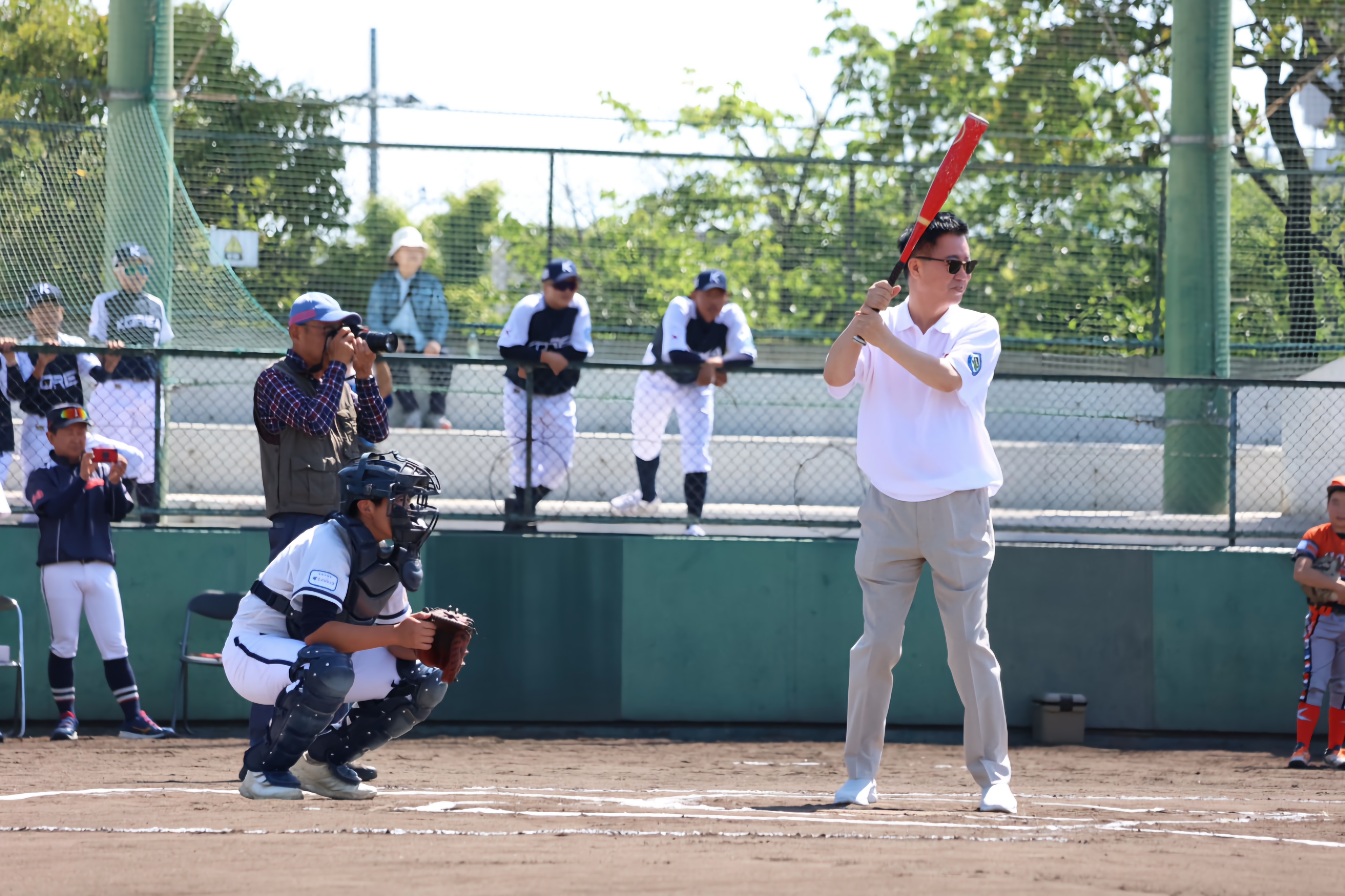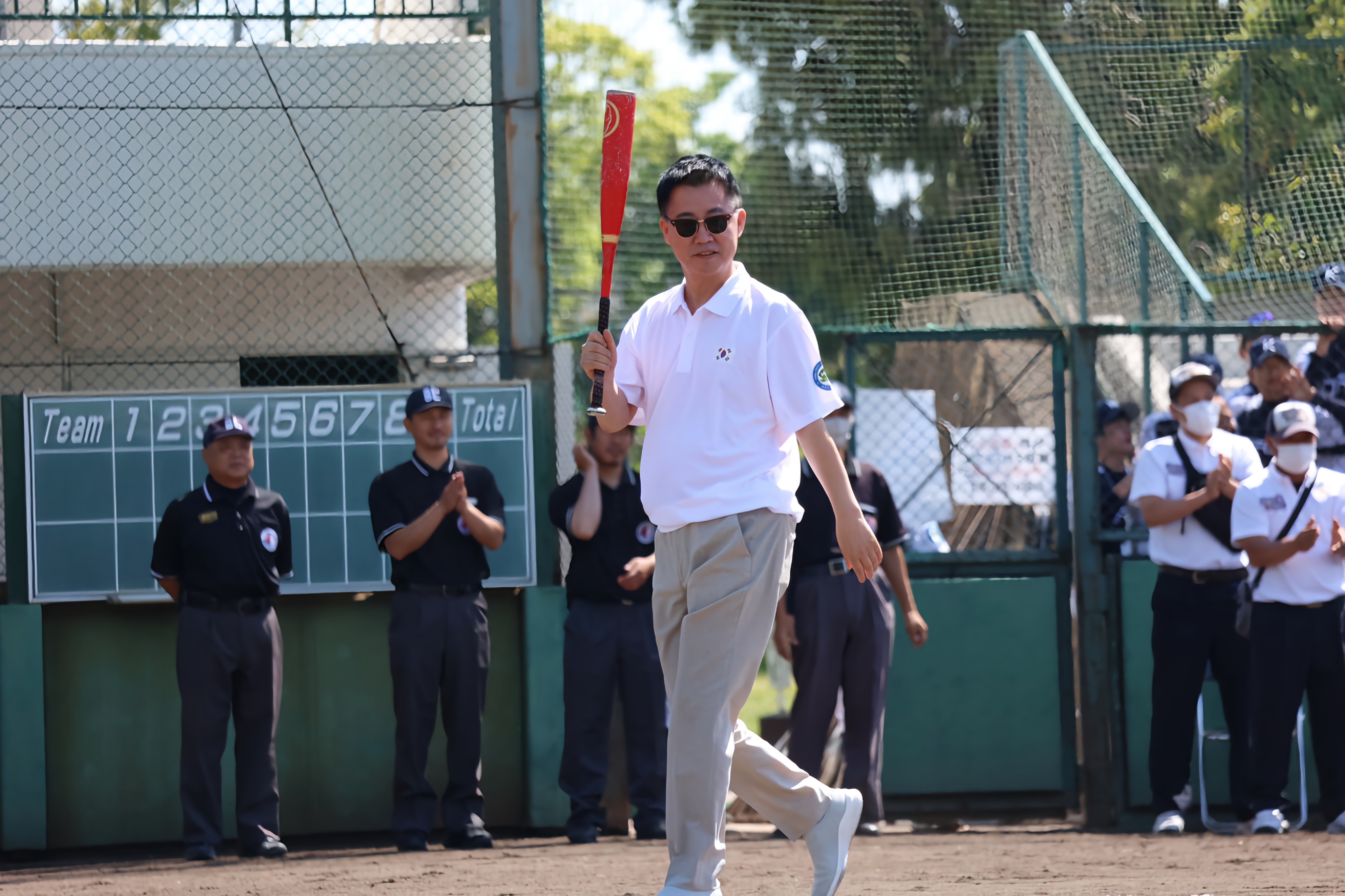 일본 프로야구 오릭스 버팔로스 출신 스타 노다 코지(現 해설가. 사사키 로키와 함께 일본 프로야구 한 경기 최다 탈삼진 19개 공동 기록 보유자)씨의 시구와 저희 대한유소년야구연맹 이상근 회장님의 시타로 영광스런 국제교류전 기념 행사를 가졌습니다. 일본 보이스연맹 효도현 多賀勝之 회장님과 오사카 나베시마 유코 회장님에게 감사드립니다.